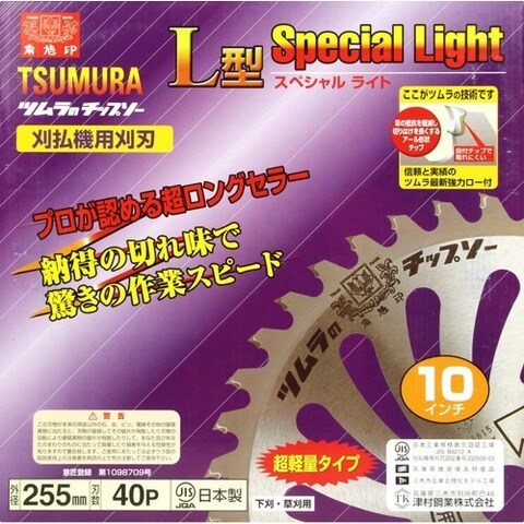 ツムラ L型 刈払機用チップソー スペシャルライト 255mm (1個)