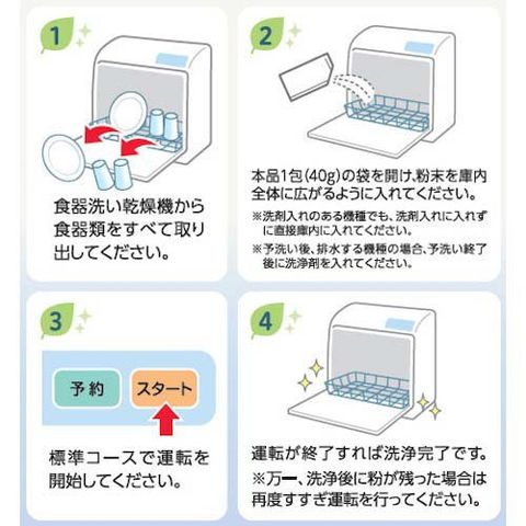 4.運転が終了すれば洗浄完了です。万一、洗浄後に粉が残った場合は再度すすぎ運転を行ってください。