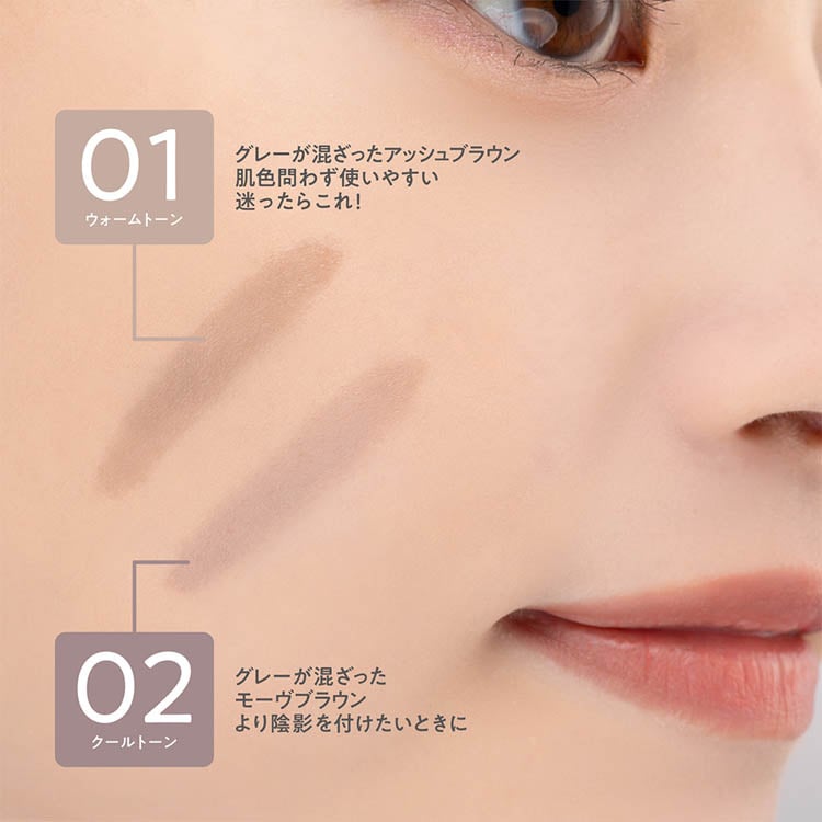 ・4mm程度繰り出して影を入れたい鼻やフェイスラインに塗布して指やパフなどでなじませてください。
