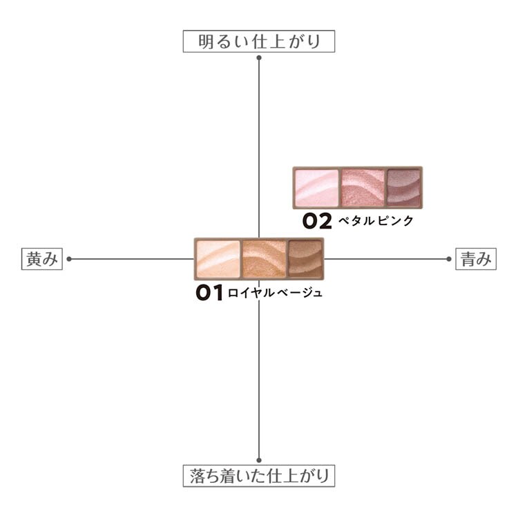 ●使い方に迷わない!3色を重ねるだけで作りこんだような繊細グラデーションが完成。