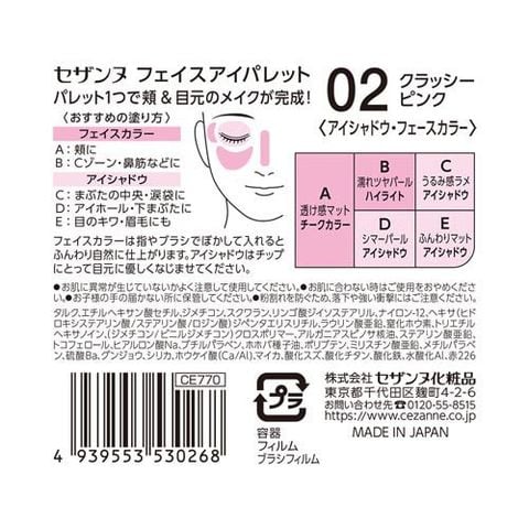 【セザンヌ フェイスアイパレット02 クラッシーピンクの商品詳細】
