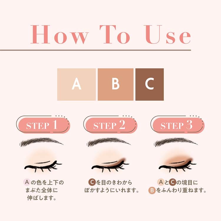 ●使い方に迷わない!3色を重ねるだけで作りこんだような繊細グラデーションが完成。