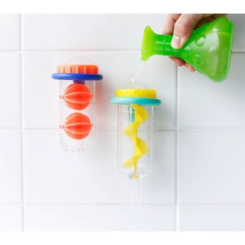 ●試験管をお風呂の壁にぴたっとくっつけて、上から水をかけてみて。