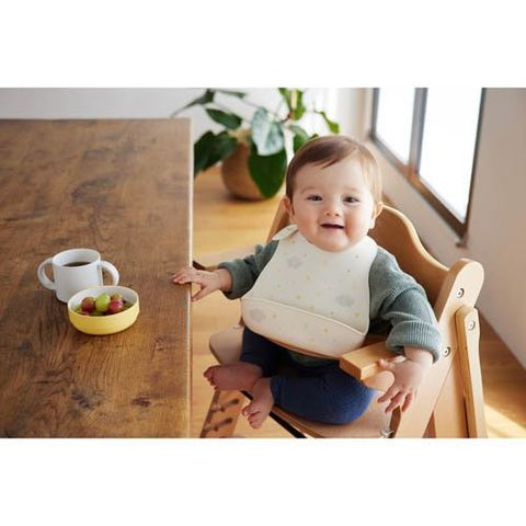 ●さっと水洗いでき、お手入れ簡単なシリコーン製ビブ。