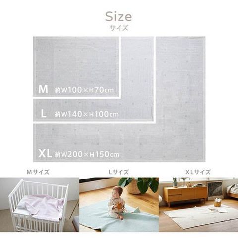 ●Lサイズは大きめなベビーマットとしてや、大人の肌掛けにもちょうど良いサイズです。