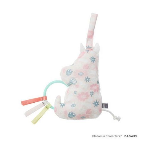 ●ベビーカーなどに取り付けられるムーミンの総柄ベルト付き、プラスチックのパーツやリボン、紐のしっぽで様々な質感を楽しめます!