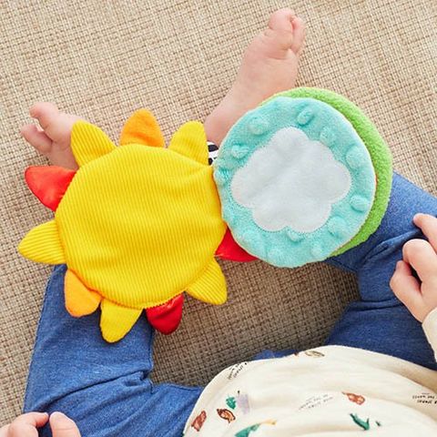 ●はっきりした色使い、いろいろな手ざわりやしかけが、赤ちゃんの興味を引きつけます。