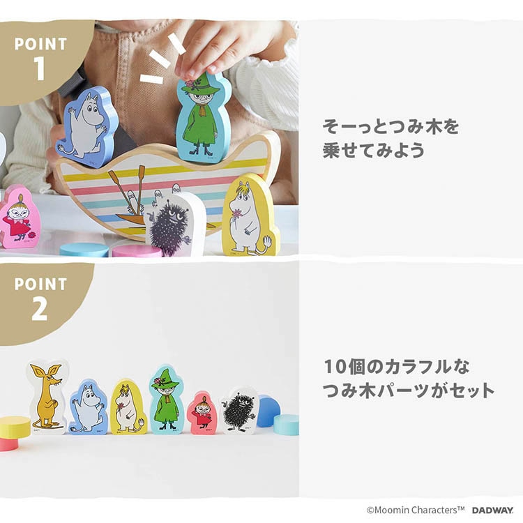 ●10このつみ木つきでムーミンやなかまたちとごっこ遊びもできます。