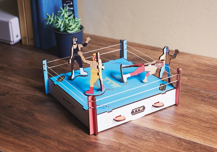 | 材質:木(MDF) サイズ(リング) :W22×L20×H7.5cm サイズ(レスラー×4人) :W5.5×L3×H8.8cm |