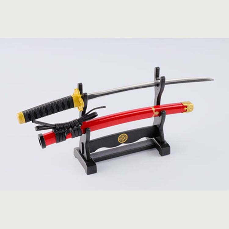 ●光沢のある赤鞘に大名結びの下げ緒が特徴的。刃紋は直刃形状、掛台には加州清光の紋をあしらうなど、細部までゲーム設定を再現している商品です。