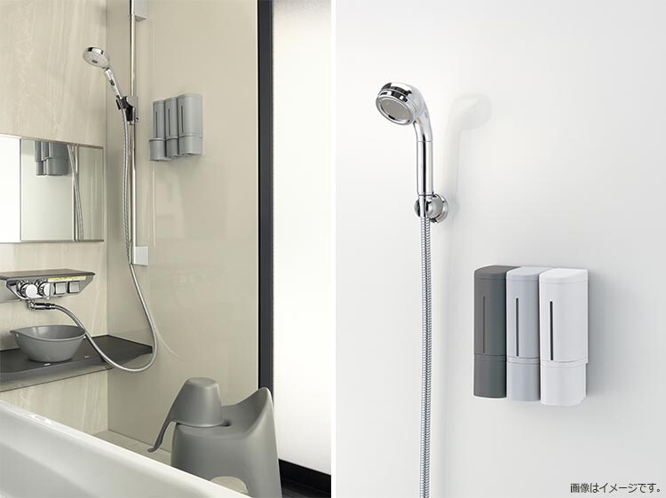 ●浴室で浮かせる収納を!下から出てくるタイプの液体用ディスペンサーです。