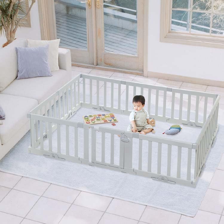 パーテーションにも使えるベビーサークル ドア付 ライトグレー (10枚入)