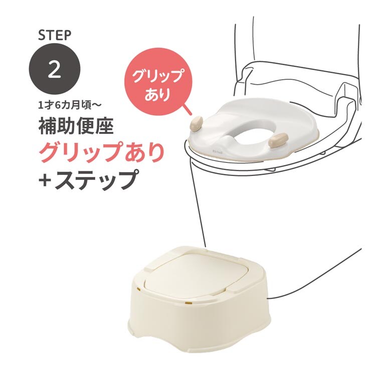 Step2:補助便座グリップあり+ステップ(1歳6カ月頃~)