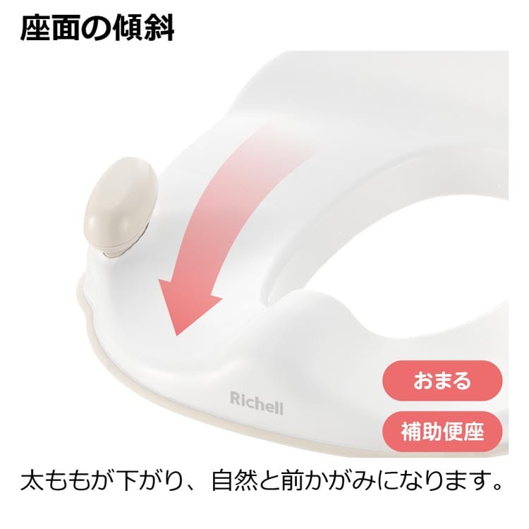 ●やわらか便座ガード付きで、横滑り、大人用便座へのキズを防ぎます。