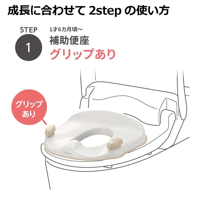 Step1:補助便座グリップあり+ステップ(1歳6カ月頃~)