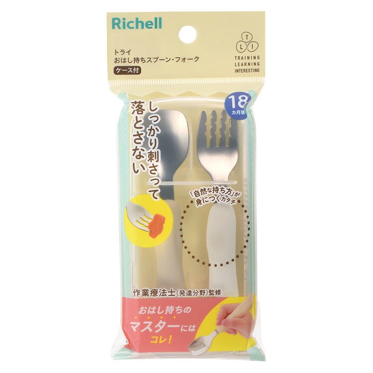 リッチェル トライ おはし持ちスプーン・フォーク(ケース付) 18カ月頃から (1個)
