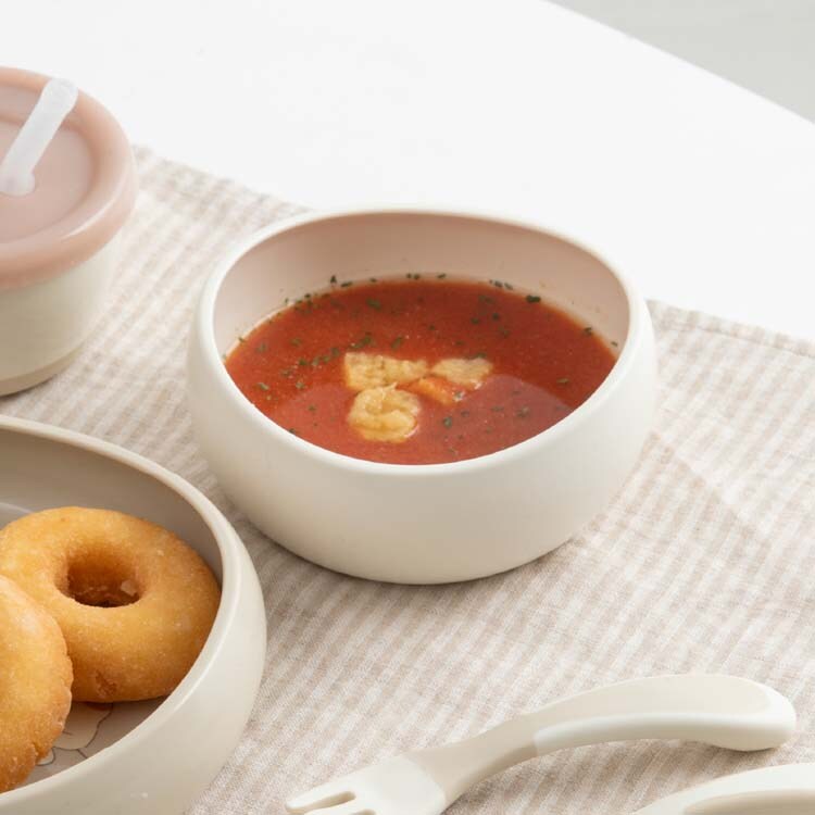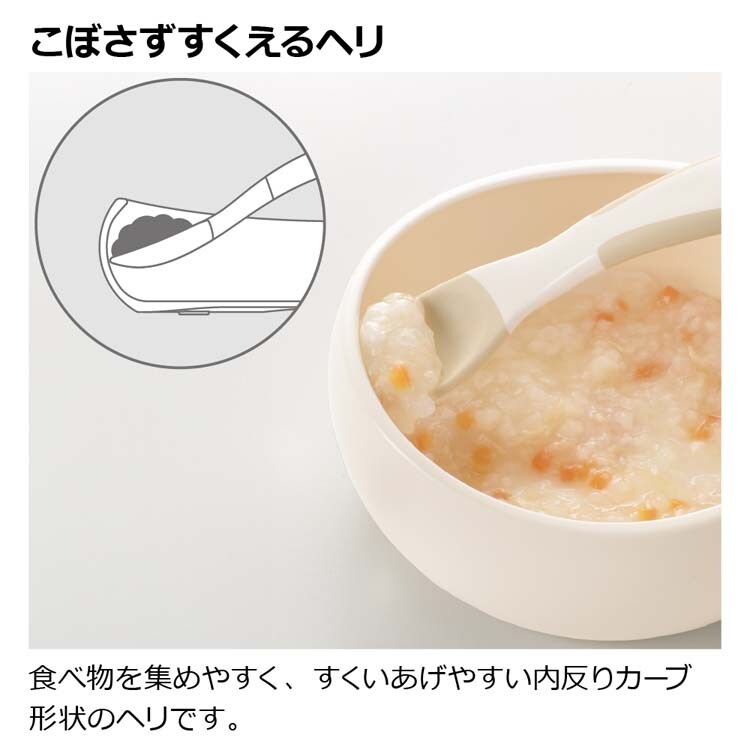 ●内反りカーブで、食べ物を集めやすく、すくいあげやすいボウルです。