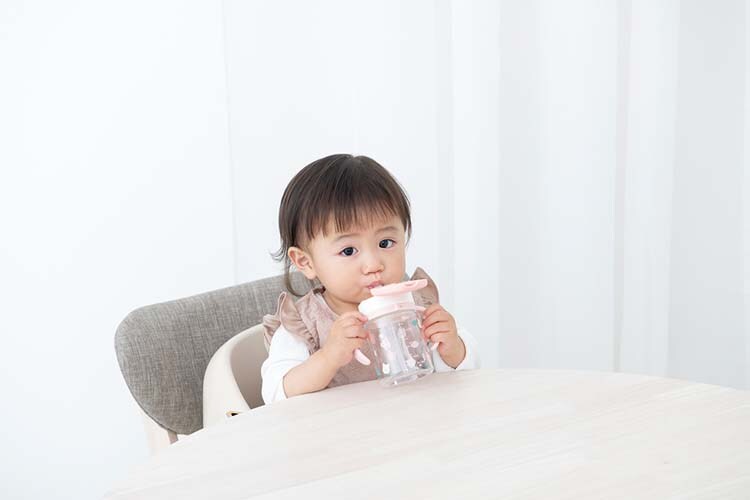 ●上手に吸えたら自分でストロー飲み、フタを外せばコップ飲みへとステップアップできます。