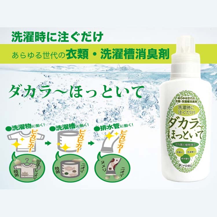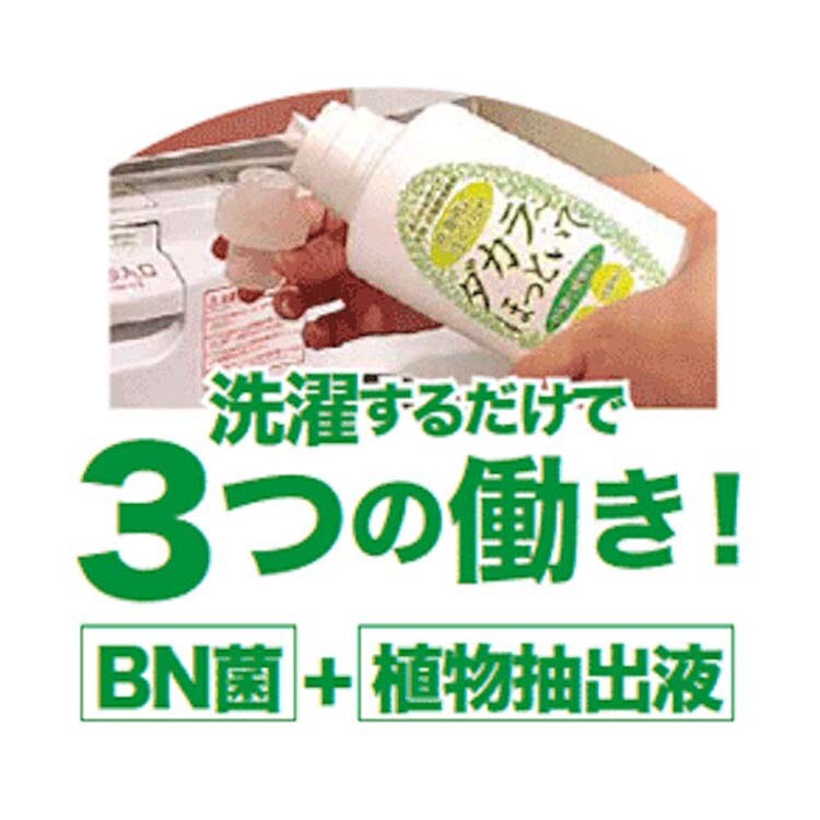 ●衣類の消臭:加齢臭や介護臭などのあらゆる世代の洗濯しても落ちない臭いや、部屋干しでの生乾きのイヤな臭いを、BN菌と植物抽出液ですばやく分解するためお洗濯するだけで消臭効果が得られます。