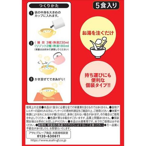 (2)<雑炊3種>熱湯230ml、<リゾット2種>熱湯180ml(湯量はお好みで調整してください)
