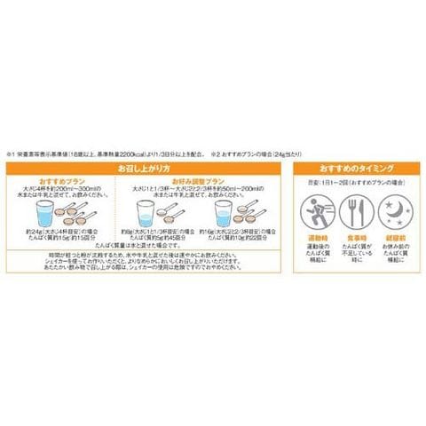 おすすめプラン:大さじ4杯を約200ml-300mlの水または牛乳と混ぜて、お飲みください。