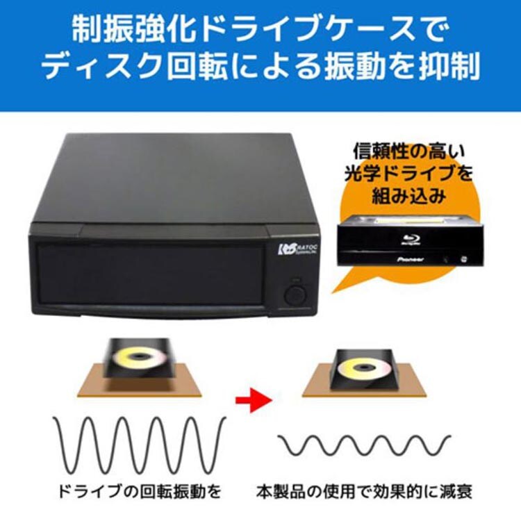 ●企業のデータアーカイブには、信頼性が不可欠です。本製品は内蔵光学ドライブを格納し外付けで利用できる、制振設計のUSB3.0ドライブケースです。
