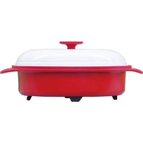 | サイズ:外形/約27.5×23×11cm(フタを閉めた状態)、内側/約20.8×20.8×5.5cm 重量:約740g 材質:本体/鉄板アルミメッキ+PTFEコーティング、シリコン、フタ/鉄板アルミメッキ・シリコン、蒸しプレート/シリコン 耐冷温度:シリコン部分/220度、底面加熱部分/250度 耐冷温度:-50 |