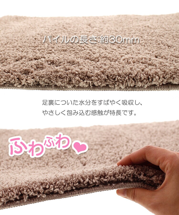 | 本体サイズ・・・約60*90cm 本体重量・・・約746g パイルの長さ・・・約30mm 裏面すべり止め加工・・・EVA樹脂 |