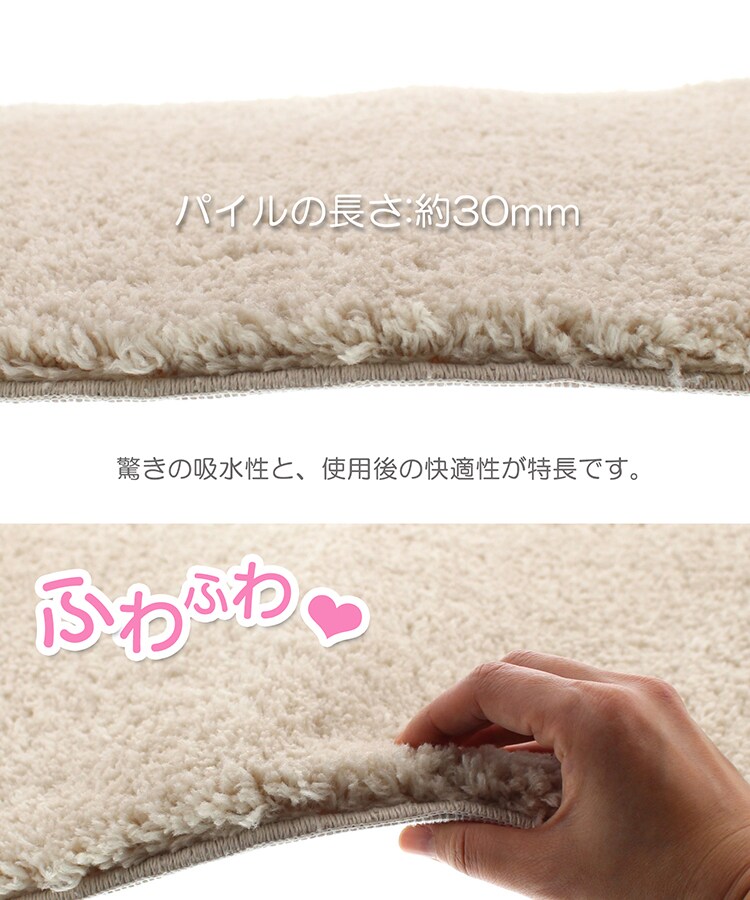 | 本体サイズ・・・約50*70cm 本体重量・・・約548g パイルの長さ・・・約30mm 裏面すべり止め加工・・・EVA樹脂 |