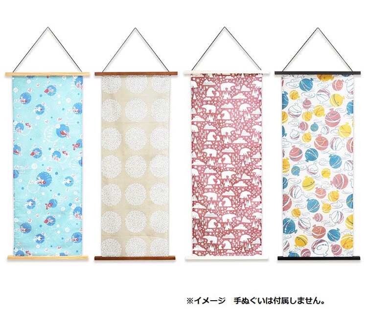 | 外寸:400×15×8mm 重量:120g(1本あたり約30g×4本) パッケージ:白下箱+OPP袋 対応サイズ:幅320mmまで 本体:木製、マグネット、合皮(吊り紐) 吊り紐付 掛けのみ [吊り紐] 約600mm 内側には滑り止めのテープが付いています。 ※手ぬぐいは付属しておりません。 ※取り付けの際には指などを挟まれないようお気を付けください。 ※小さなお子様の手に届く場所には飾らないようにしてください。 ※1.5mm以上の厚みがあるものは、紐が抜けたりマグネットで固定ができない恐れがある為、推奨しておりません。 |