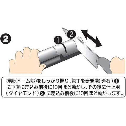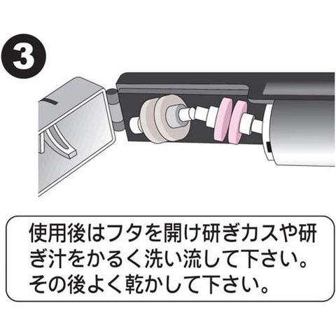 ●セラミック砥石部で荒研ぎ、ダイヤモンド砥石部で仕上研ぎをする事ができます。