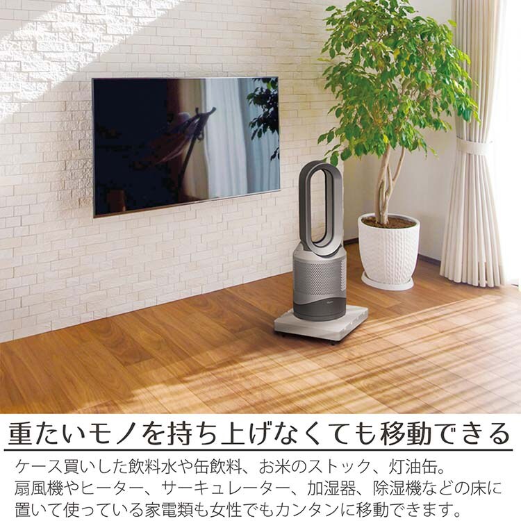 ●扇風機やヒーター、サーキュレーター、加湿器、除湿機などの床に置いて使っている家電類も女性でもカンタンに移動できます。