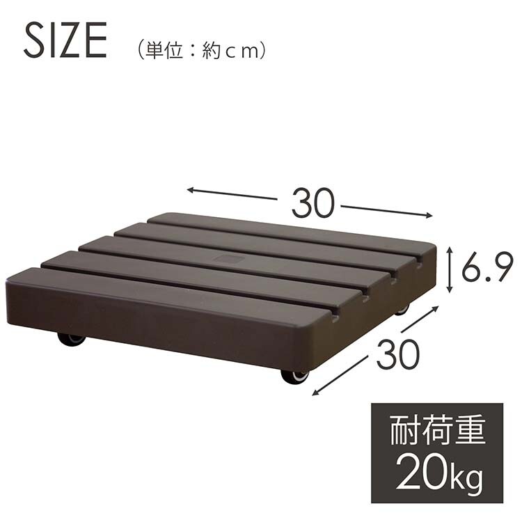 | ・本体重量(g):約750g ・素材・材質:(本体)ポリプロピレン樹脂、(キャスター)鉄・エラストマー ・耐荷重:20kg/ゴム製キャスター使用 ・サイズ:約30*30*6.9cm |