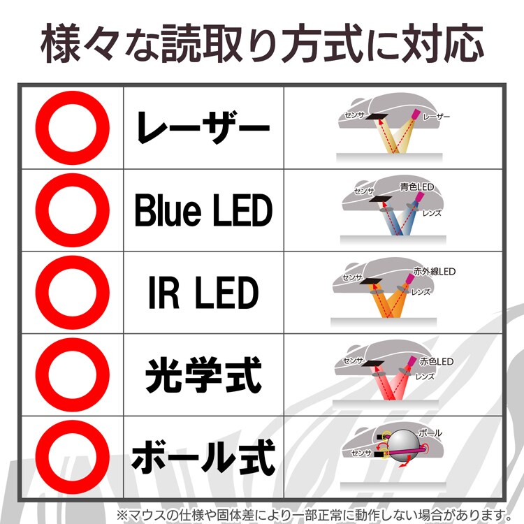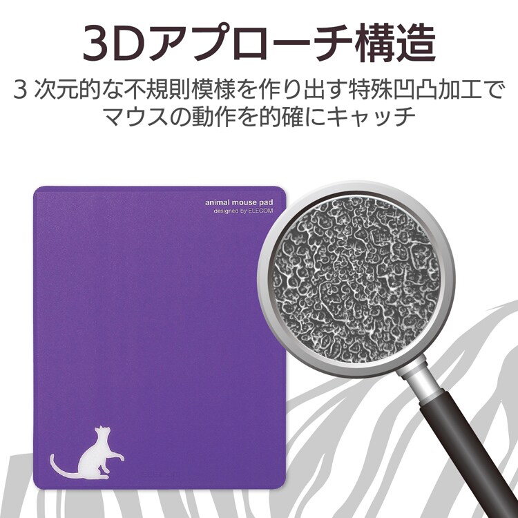 ●表面に特殊な凹凸処理を施し3次元的な不規則模様を作り出すことで、マウスの動きを的確にキャッチし、快適なマウス操作を実現します。