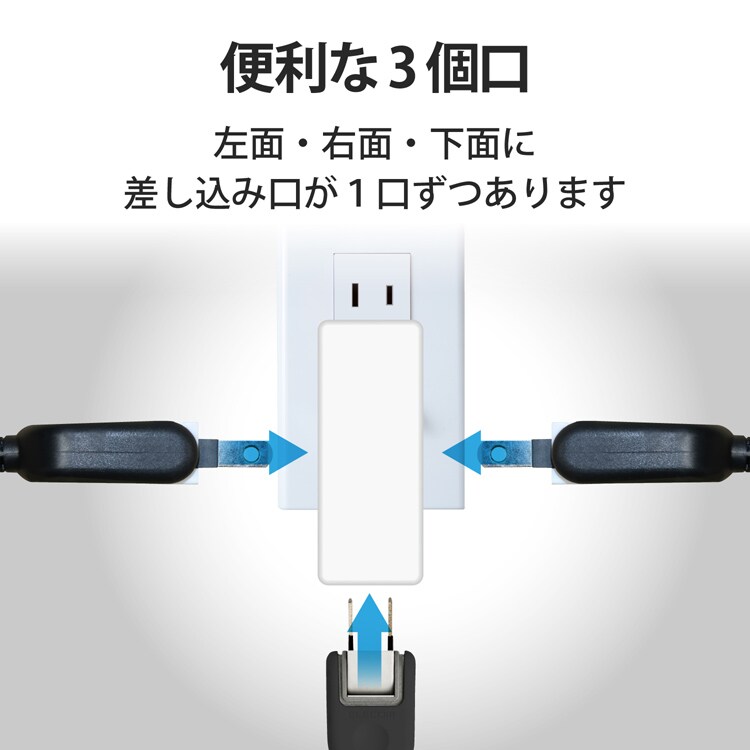 エレコム 延長コード 電源タップ 3個口 トリプル 側面3個口タイプ T-TR04-2300WH (1個入)