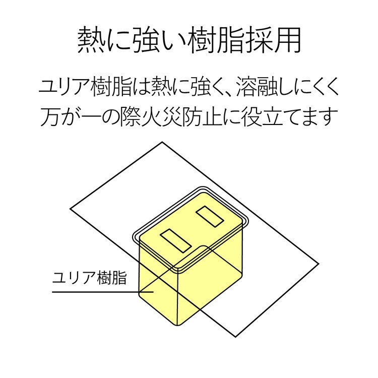 ●耐熱性に優れたユリア樹脂を使用していますので、万一の発熱の際にも融解しにくく、電気火災の防止に有効です。