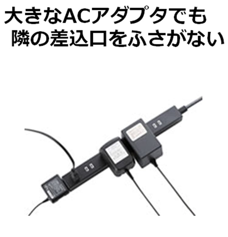 ●タップの差込口の間隔が約58mmと通常のタップと比較して広く、ACアダプタもすっきり接続可能です。