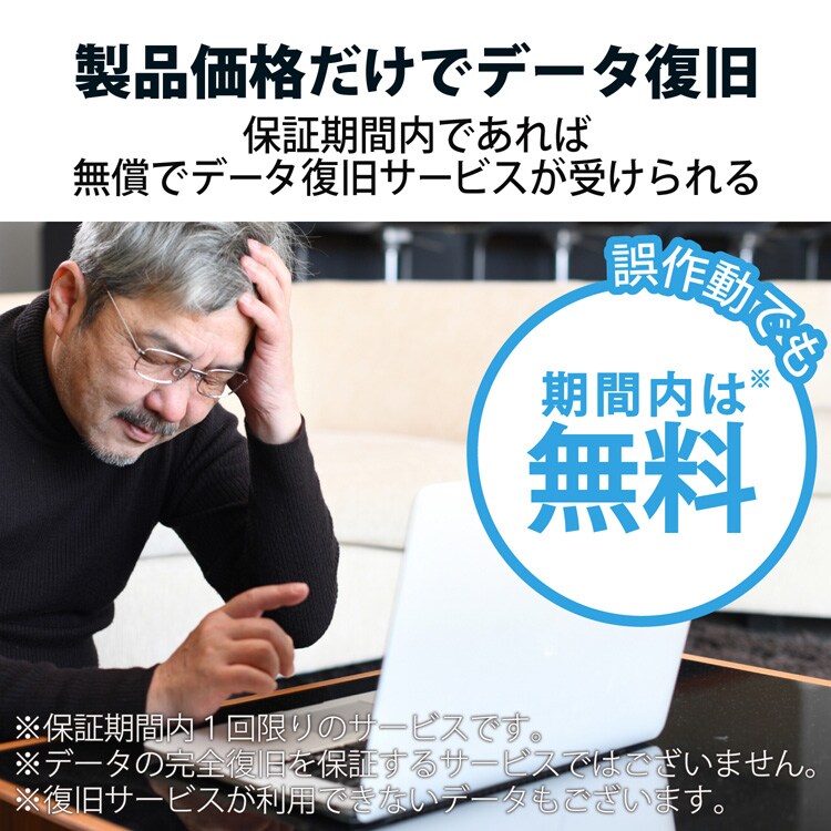 ●1年間の保証期間内で1回限り、無償でデータ復旧サービスを利用可能です。