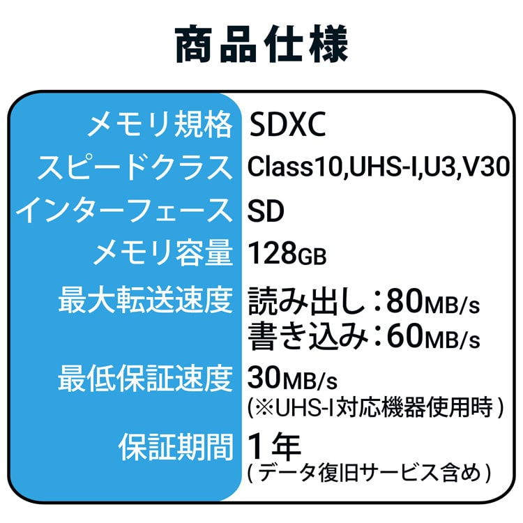最低保証速度:30MB/s(※UHS-I対応機器使用時)