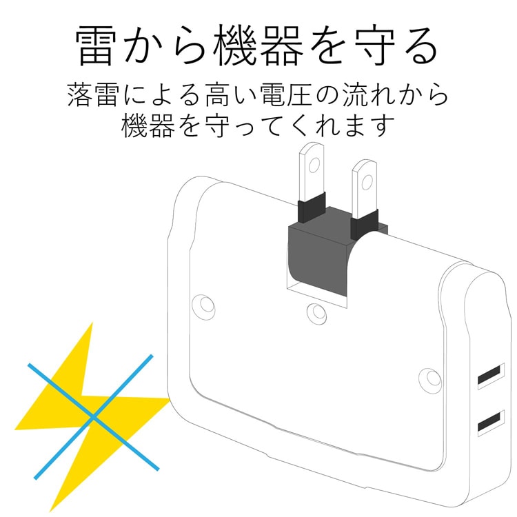 ●雷サージから電子機器を守る、高性能雷サージ吸収素子を内蔵しています。