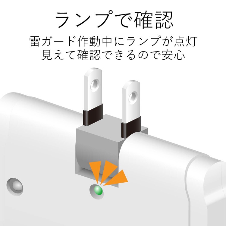 ●最大サージ電圧2500Vの高性能雷サージ吸収素子(バリスタ)を内蔵していますので、雷によるパソコンやAV機器などの電子機器への被害防止に有効です。(最大サージ電圧2500VはIEC61000-4-5規格に基づく数値です)