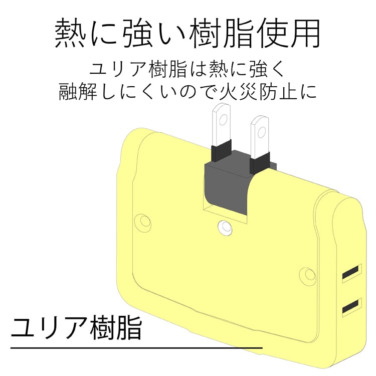 ●耐熱性に優れたユリア樹脂を使用していますので、万一の発熱の際にも融解しにくく、電気火災の防止に有効です。