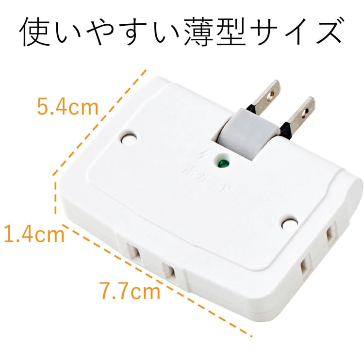 | 本体差込口形状・・・2ピン 本体差込口コ入数・・・3コ入口 プラグ仕様・・・2ピン 定格・・・125V・15A・1500W 機能・・・雷ガード、絶縁キャップ付きプラグ、通電表示ランプ、スイングプラグ 外形寸法・・・W77*D14*H54.5 質量・・・約62g 使用可能地域・・・本製品は日本国内の電源を想定して設計されていますので、日本国外ではご使用いただけません。 電気用品安全法・・・PSE適合 |
