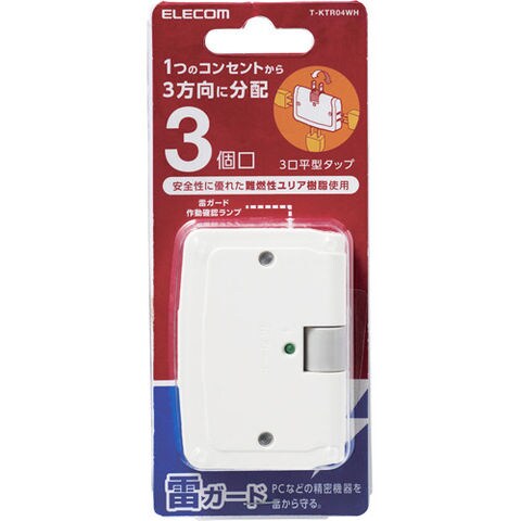 エレコム 雷ガード 電源タップ コーナータップ 3個口 ホワイト白 T-KTR04WH (1個入)