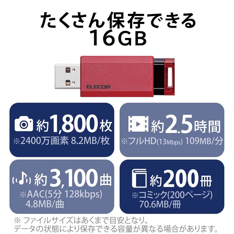 【エレコム USBメモリ USB3.1(Gen1) ノック式 16GB オートリターン機能 MF-PKU3016GRDの商品詳細】