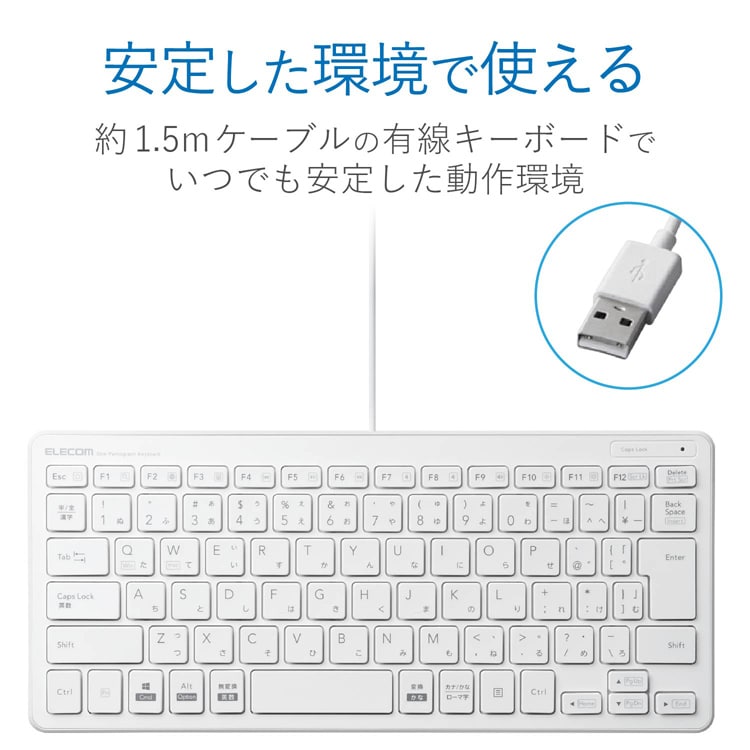 【エレコム ミニキーボード 有線 パンタグラフ 超薄型 1.5m ホワイト TK-FCP096WHの商品詳細】