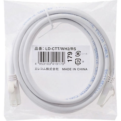 LANケーブル CAT5E 爪折れ防止 EU RoHS指令準拠 2m ホワイト LD-CTT/WH2/RS (1本)