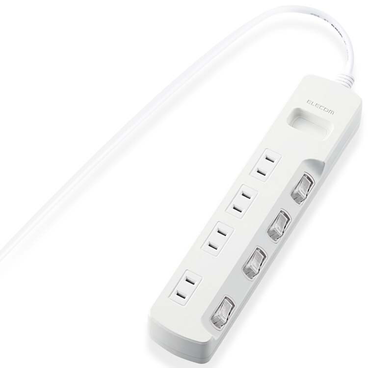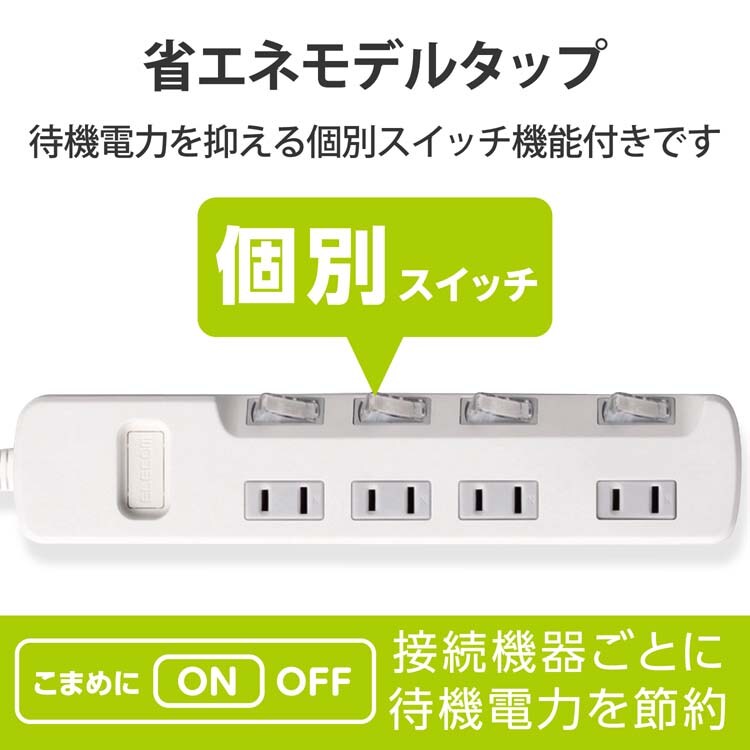 エレコム 延長コード 電源タップ 2m 2P 4個口 個別スイッチ付 省エネ 白 T-E5A-2420WH (1個入)