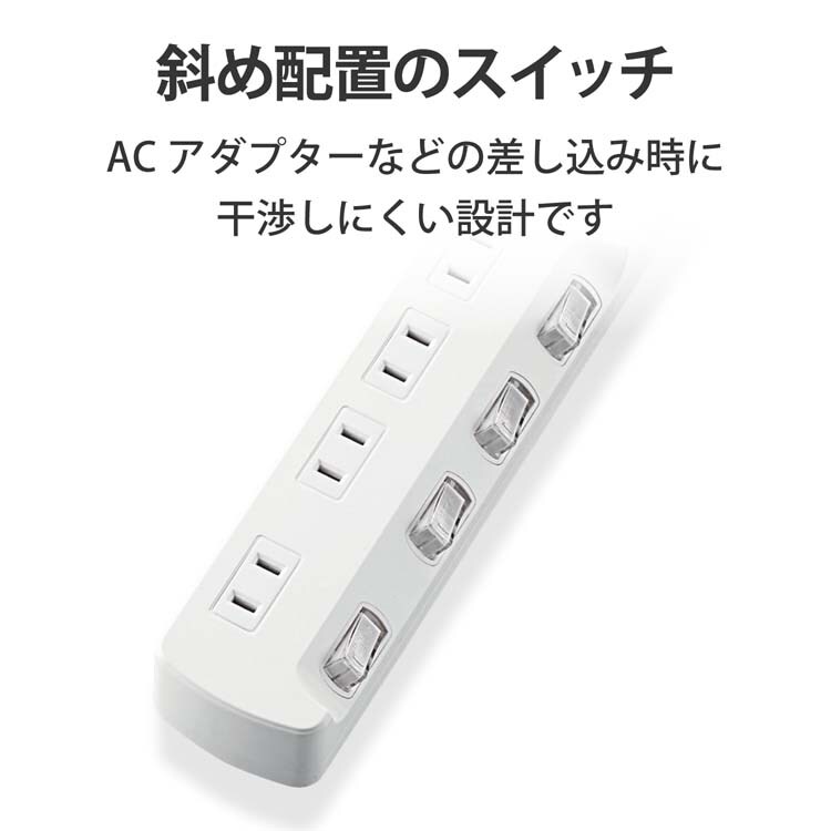 【エレコム 延長コード 電源タップ 2m 2P 4個口 個別スイッチ付 省エネ 白 T-E5A-2420WHの商品詳細】