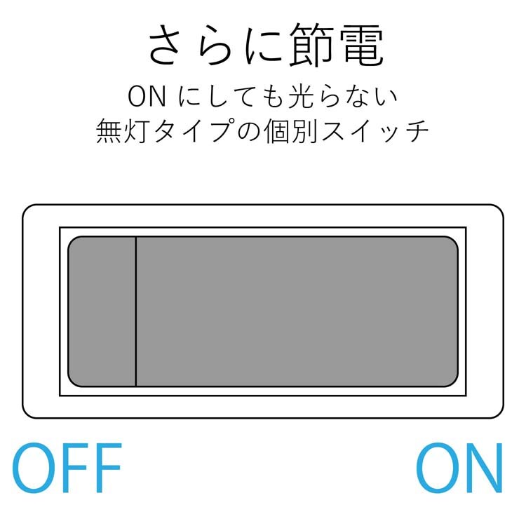 ●接続機器ごとにON/OFFでき、待機電力を個別に節約できる個別スイッチが付いています。